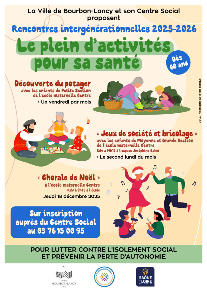 La Ville de Bourbon-Lancy et son Centre Social continuent son projet intergénérationnel pour terminer l’année 2025, à destination des personnes âgées de plus de 60 ans.