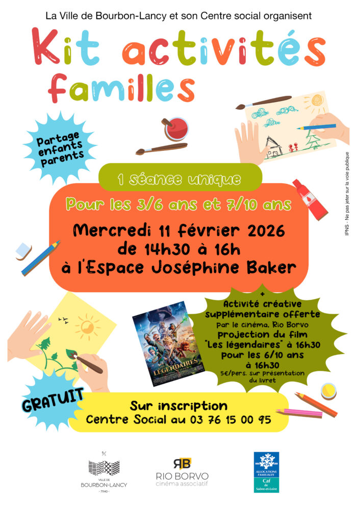 Une journée gratuite est proposée pour de beaux moments de partages enfants/parents mercredi 11 février 2026 de 14h30 à 16h à l’Espace Joséphine Baker, avec une activité créative supplémentaire offerte par le Cinéma Rio Borvo qui projettera le film « Les Légendaires » à 16h30 (5€/pers sur présentation du livret).