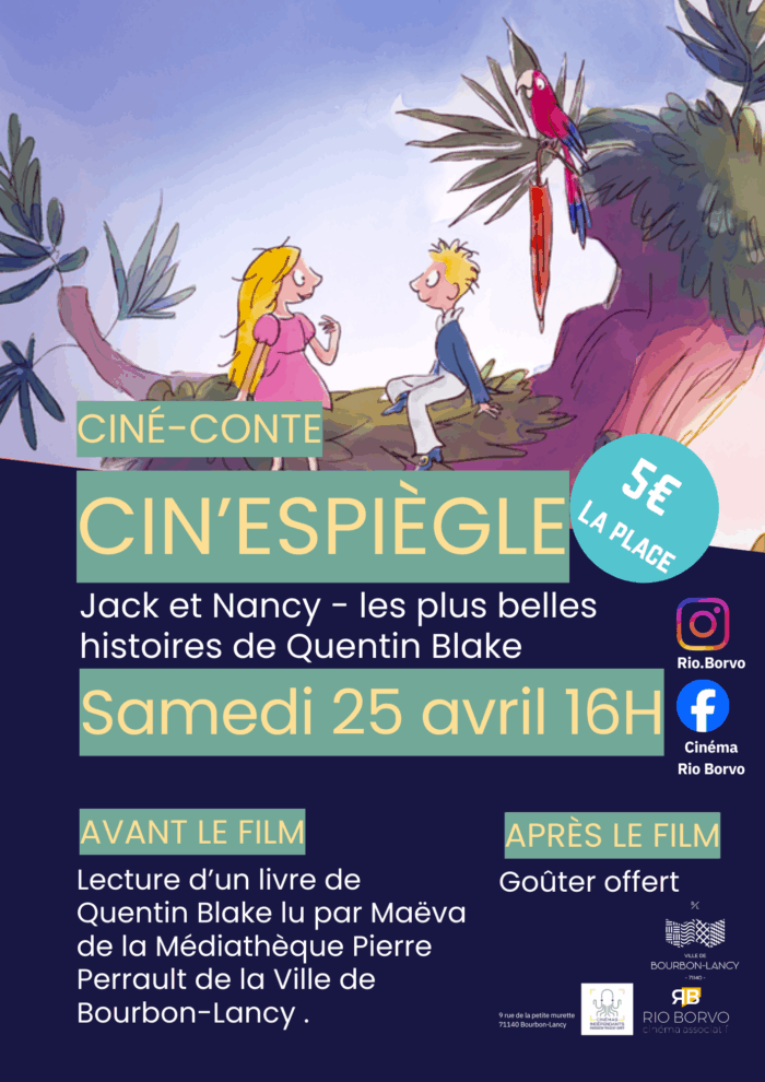La Médiathèque Pierre Perrault de Bourbon-Lancy et le Cinéma Rio Borvo vous propose un Ciné-conte sur « Jack et Nancy », les plus belles histoires de Quentin Blake.